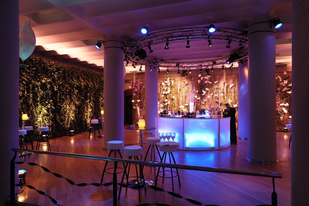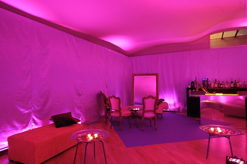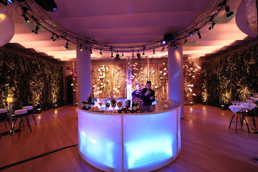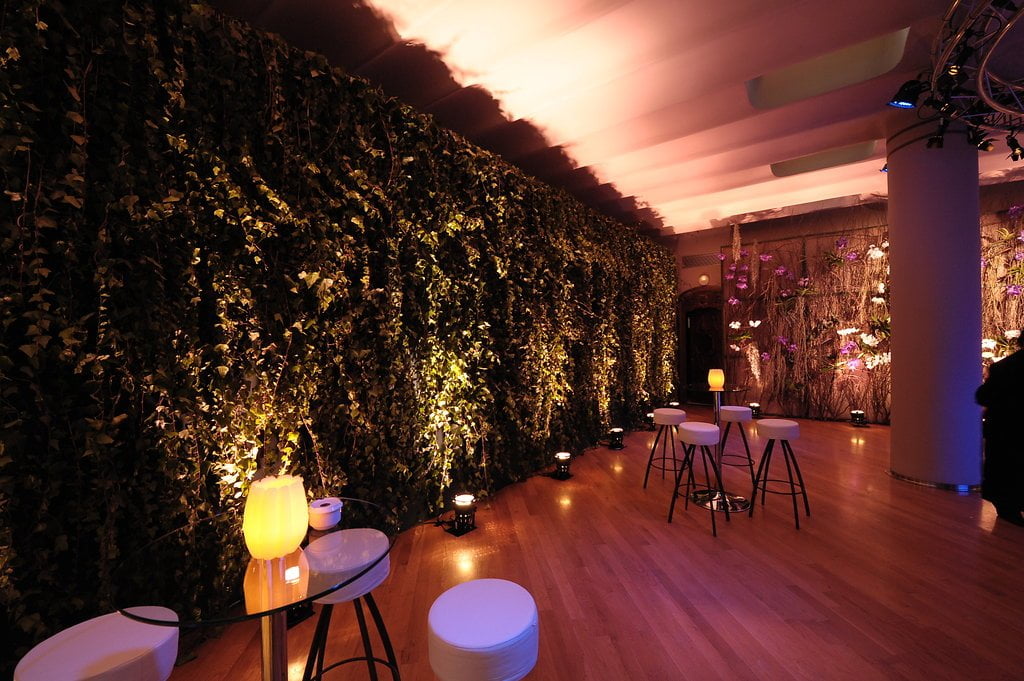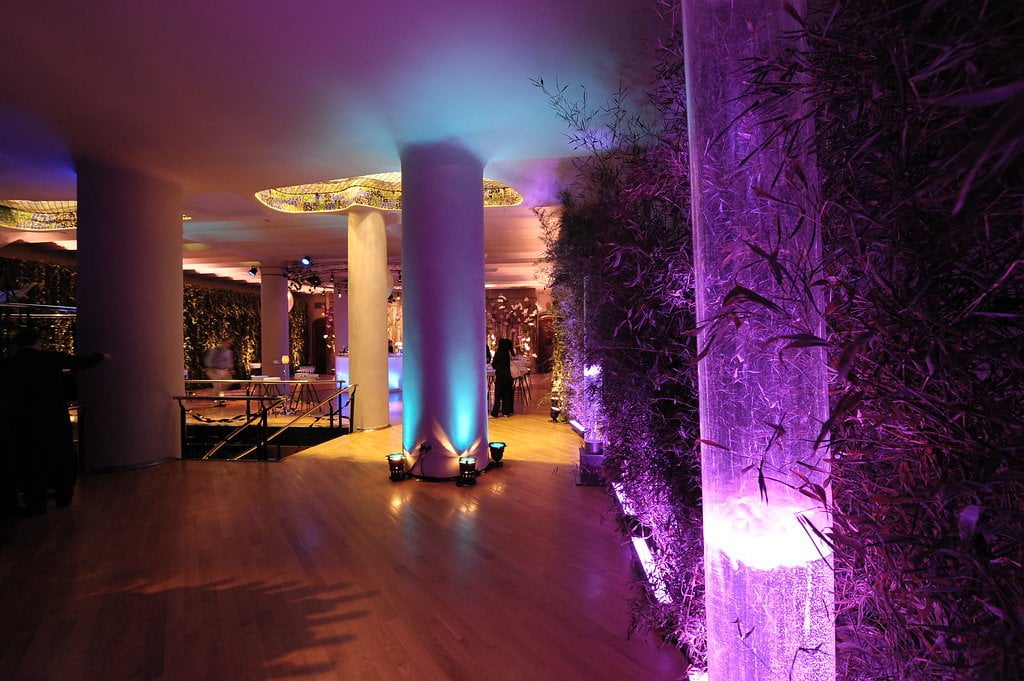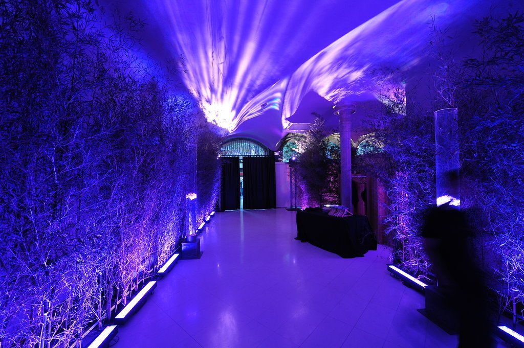 Our clients, who had recently returned from a trip to the Indian Ocean, wanted to meet their friends in a tropical setting and then walk along an undulating path of light into an imaginary space from the Arabian Nights. To achieve this, we transformed the coach houses and coal bunkers of Casa Batlló into one grand stage.