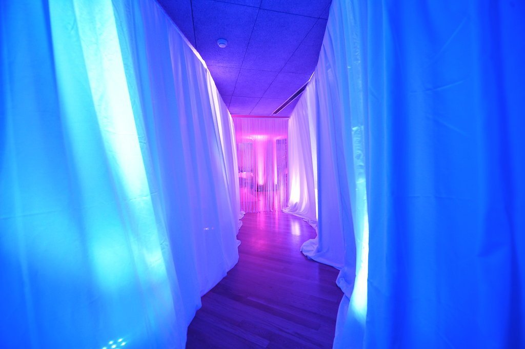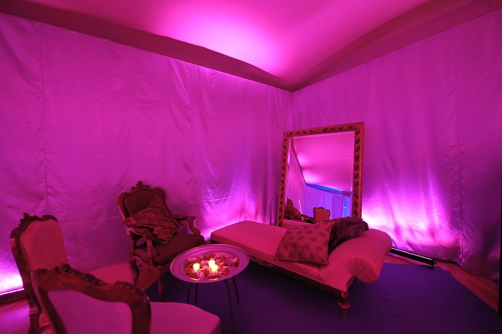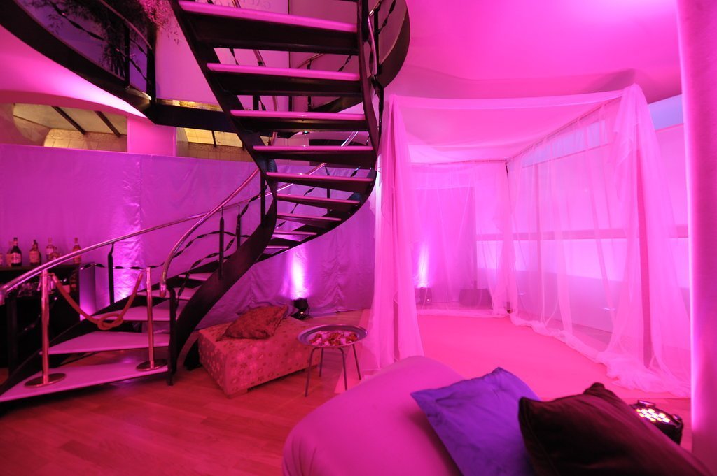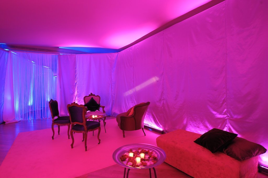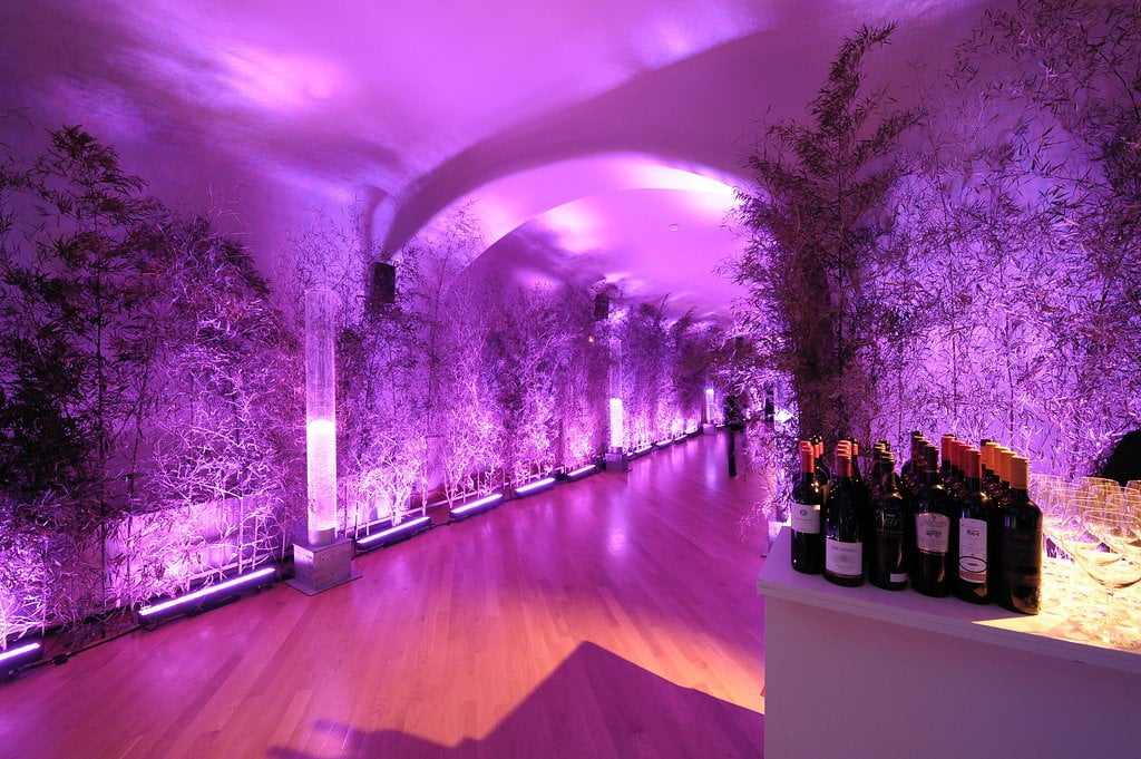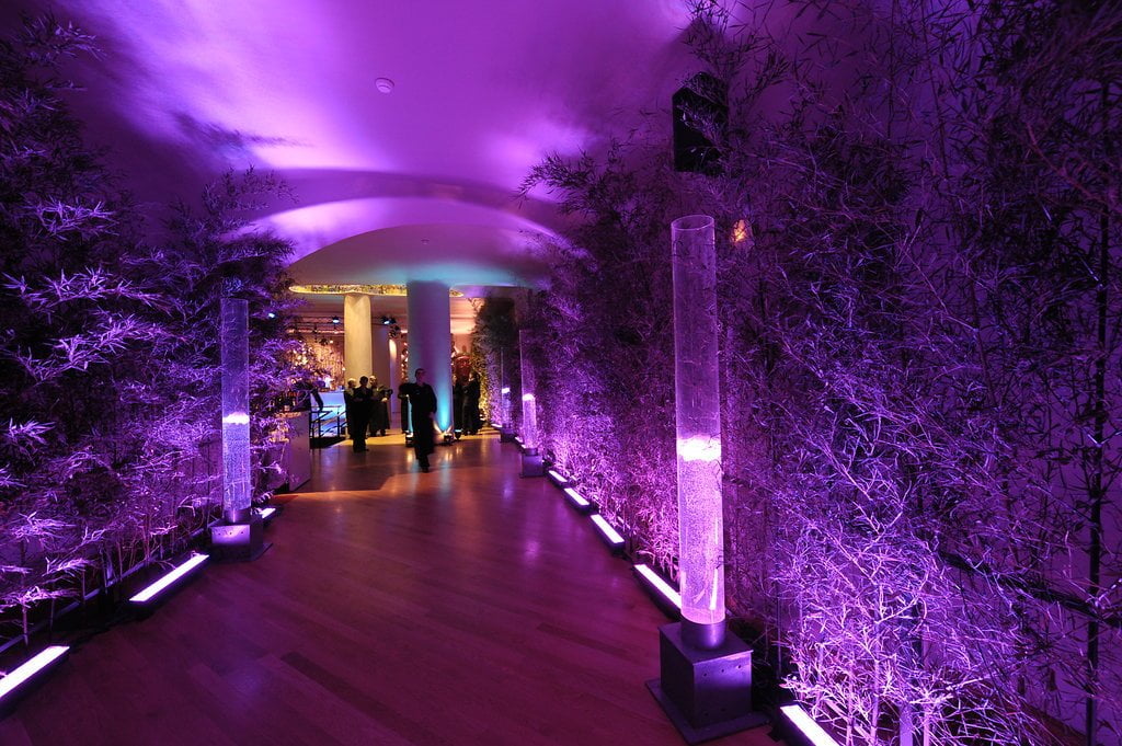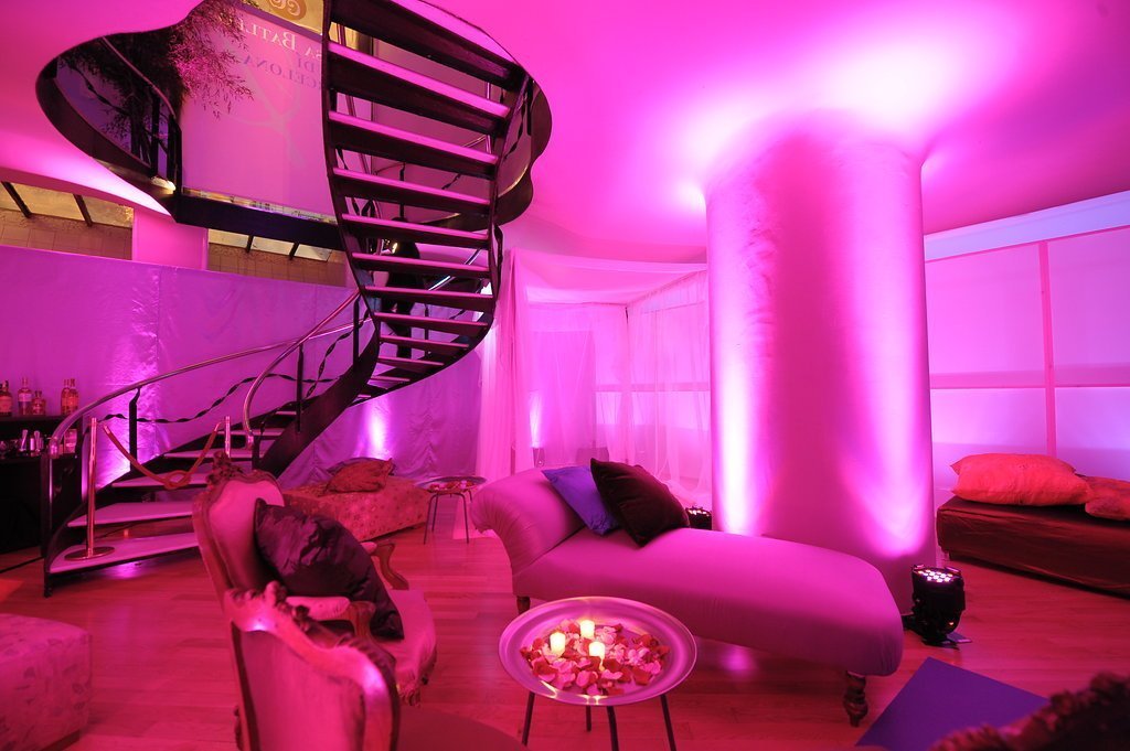 Our clients, who had recently returned from a trip to the Indian Ocean, wanted to meet their friends in a tropical setting and then walk along an undulating path of light into an imaginary space from the Arabian Nights. To achieve this, we transformed the coach houses and coal bunkers of Casa Batlló into one grand stage.