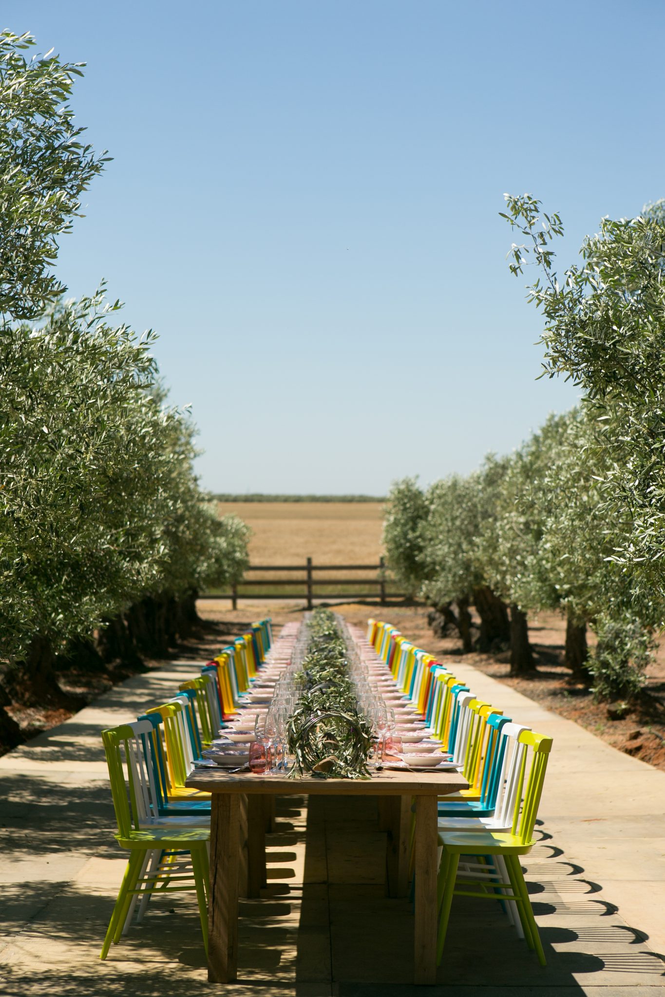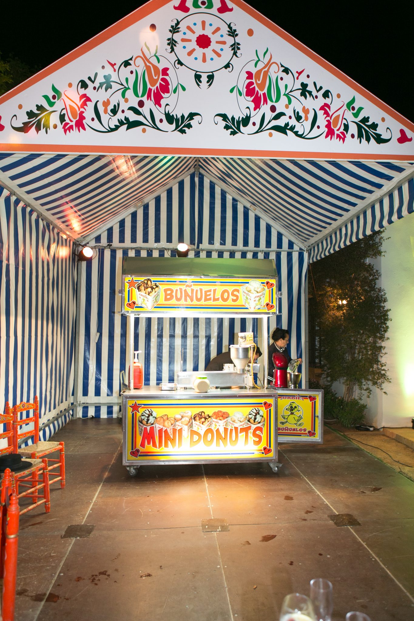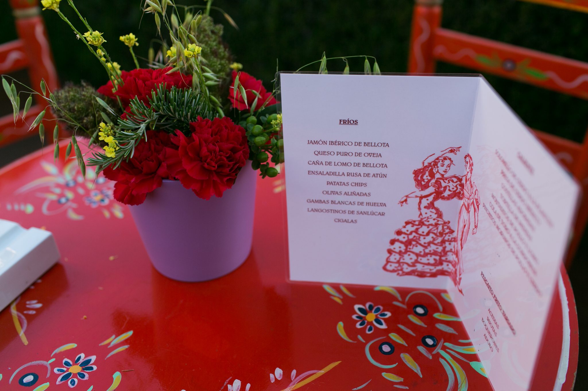 La recreación de la feria sevillana fue el plato fuerte de la fiesta, que fue precedida por una cena íntima, y coronada por una bucólica comida entre olivos al estilo andaluz.
